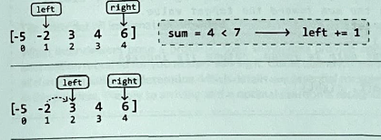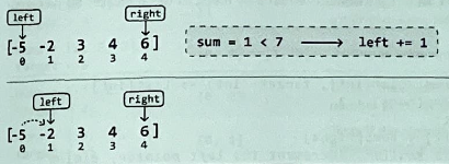 Again, the sum of the values at those two pointers (4) is too small. Let's increment the left pointer: