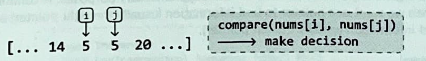 Two pointers at two different positions, we can compare the elements and make decisions.
